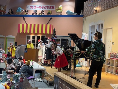 12月20日(土)、JRC部・家庭クラブの生徒11名が、クレエール子ども食堂で行われたクリスマス会のお手伝いをさせていただきました。スターバックスのバリスタ体験やクリスマスコンサートなど、楽しいイベントが数多く企画されており、多くの親子連れの方々が参加されていました。