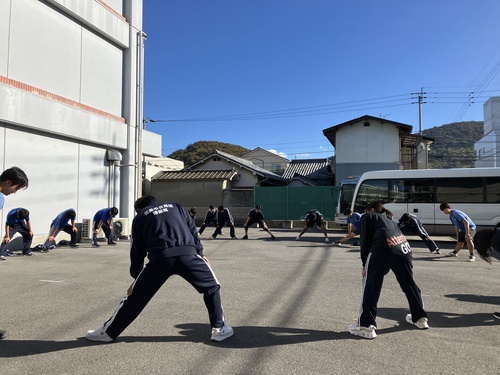 アップでランニングをして、いつものストレッチです。