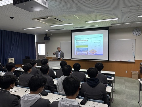 徳島大学の教授3名および企業の方1名を本校にお招きし、「徳島大学理工系キャリア形成セミナー」を開催しました。本セミナーは、1年生理数科生徒および2年生理系希望者を対象に実施しました。当日は、各分野で第一線で活躍されている先生方から、それぞれご講演をいただきました。